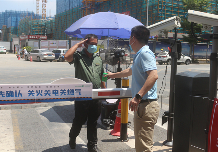 咬定青山不放松,立根原在破巖中。 千磨萬擊還堅(jiān)勁,任爾東西南北風(fēng)。 ——清代鄭燮的《竹石》 炎炎酷暑,疫情再起,鴻運(yùn)物業(yè)保安員們站出崗?fù)ぃ斨邷仳?yàn)碼排查,用“咬定青山不放松”的精神,堅(jiān)決踐行防疫措施;用“千磨萬擊還堅(jiān)勁”的定力,堅(jiān)守小區(qū)“安全門”。7月26日上午,鴻運(yùn)物業(yè)總經(jīng)理陳喜祥、黨支部書記陳文遠(yuǎn),同高層代表、黨員代表,前往鴻運(yùn)物業(yè)服務(wù)的小區(qū),慰問一線保安員們。總經(jīng)理陳喜祥為保安員們送上飲料,一聲聲“辛苦了”道出對保安員工作的肯定和感謝。陳總要求各物業(yè)服務(wù)中心備齊解暑應(yīng)急藥品,定期開展“送清涼”活動,讓員工在辛勤的工作中感受到公司的關(guān)懷。鴻運(yùn)物業(yè)黨支部書記陳文遠(yuǎn)與保安員握手交談,叮囑其多喝水、注意防暑,并切身感受其工作環(huán)境,和黨員代表們一同提出改良建議。在麒麟花園,我們遇到了黨員志愿者,陳文遠(yuǎn)書記對黨員志愿者的支持表示感謝。在人流量較大的沙頭舊村卡口,我們見到了保安員耐心指引無法打開健康碼的居民,保證卡口暢通不擁堵;在鴻德園卡口,我們見到了保安員為沒有佩戴口罩的老人送上口罩;在盛芳園卡口,我們見到了保安員耐心與外賣員溝通,為其解釋新下達(dá)的外賣員快遞員不能進(jìn)入小區(qū)的規(guī)定;在麒麟花園卡口,我們見到了保安員奔跑到烈日下,細(xì)致查驗(yàn)車中人員的健康碼……因部分物業(yè)服務(wù)中心需協(xié)助處理居民核酸采樣,為不影響正常工作,未能一一前往慰問,在此向全體鴻運(yùn)人道一聲“辛苦了”!